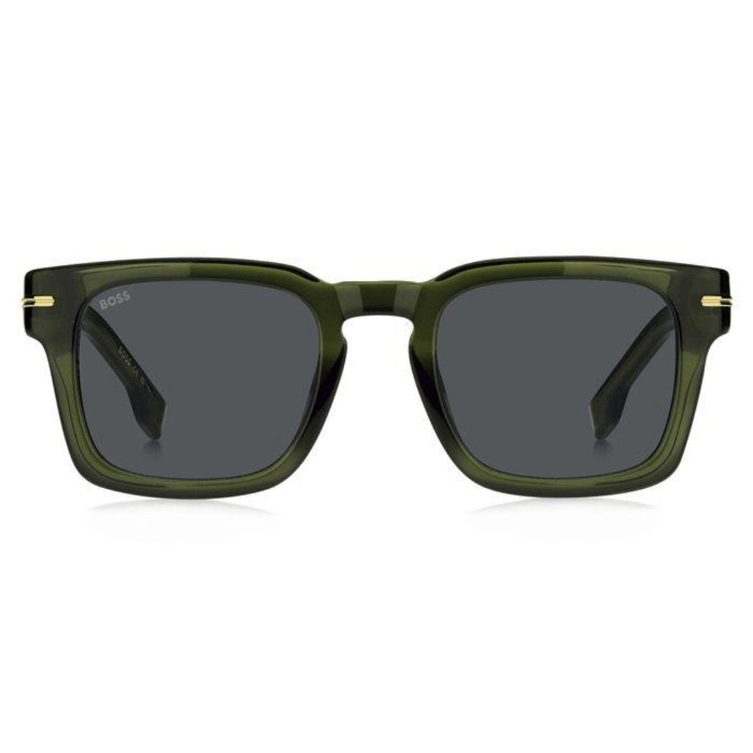 Gafas de sol de la marca Boss hechas en acetato de color verde, forma rectangular y lentes con índice de protección 3.
