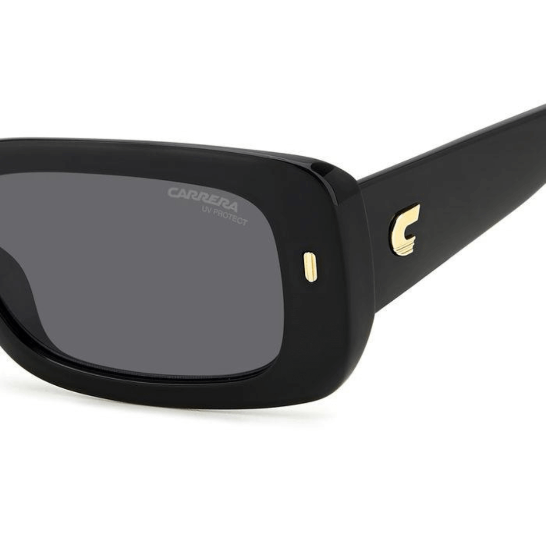 Gafas de sol Carrera hechas en acetato de color negro, forma rectangular y lentes con índice de protección 3.
