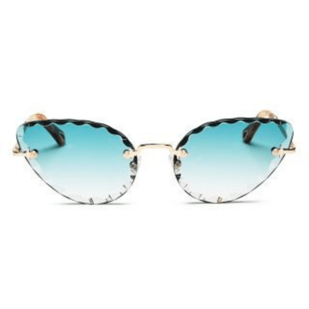 Gafas de sol femeninas con forma cat-eye en semi montura metálica color oro. Las lentes tienen el borde tallado.