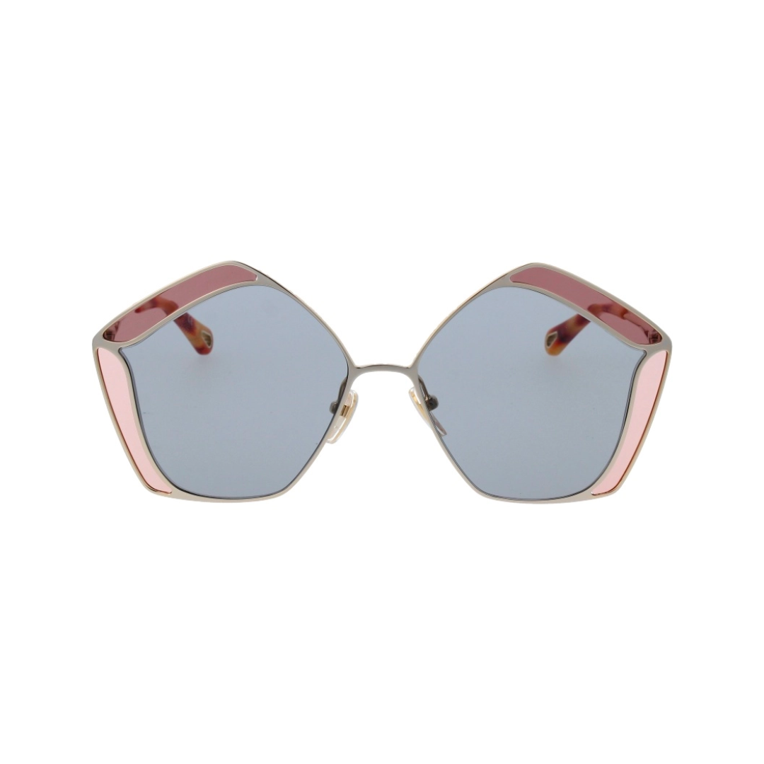 Gafas de sol con un estilo elegante y moderno, montura con lentes hexagonales, en metal y de color oro.