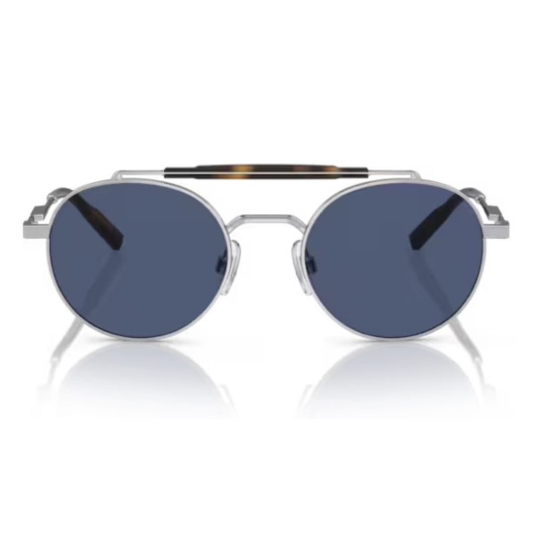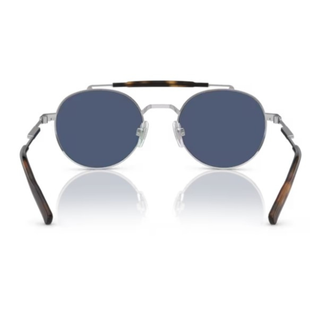 Gafas de sol Dolce&Gabbana hechas en acero de color plata, forma redonda con doble puente estilo pantos y lentes azules con índice de protección 3.