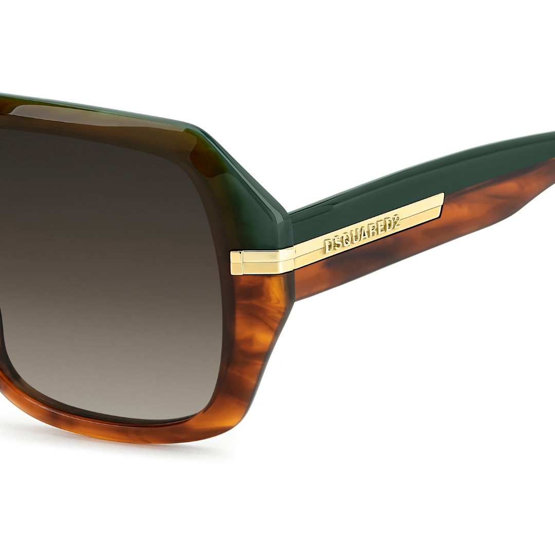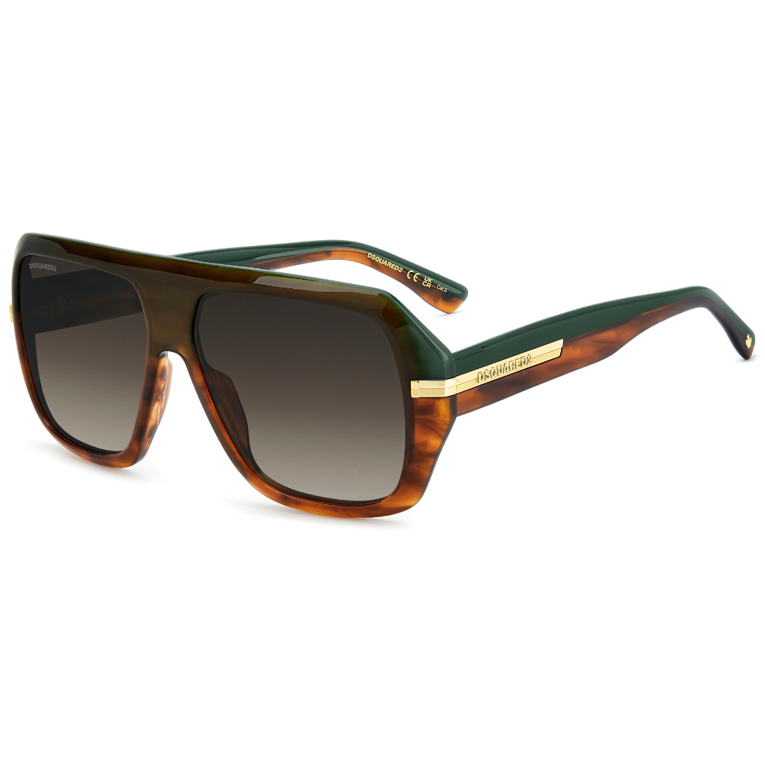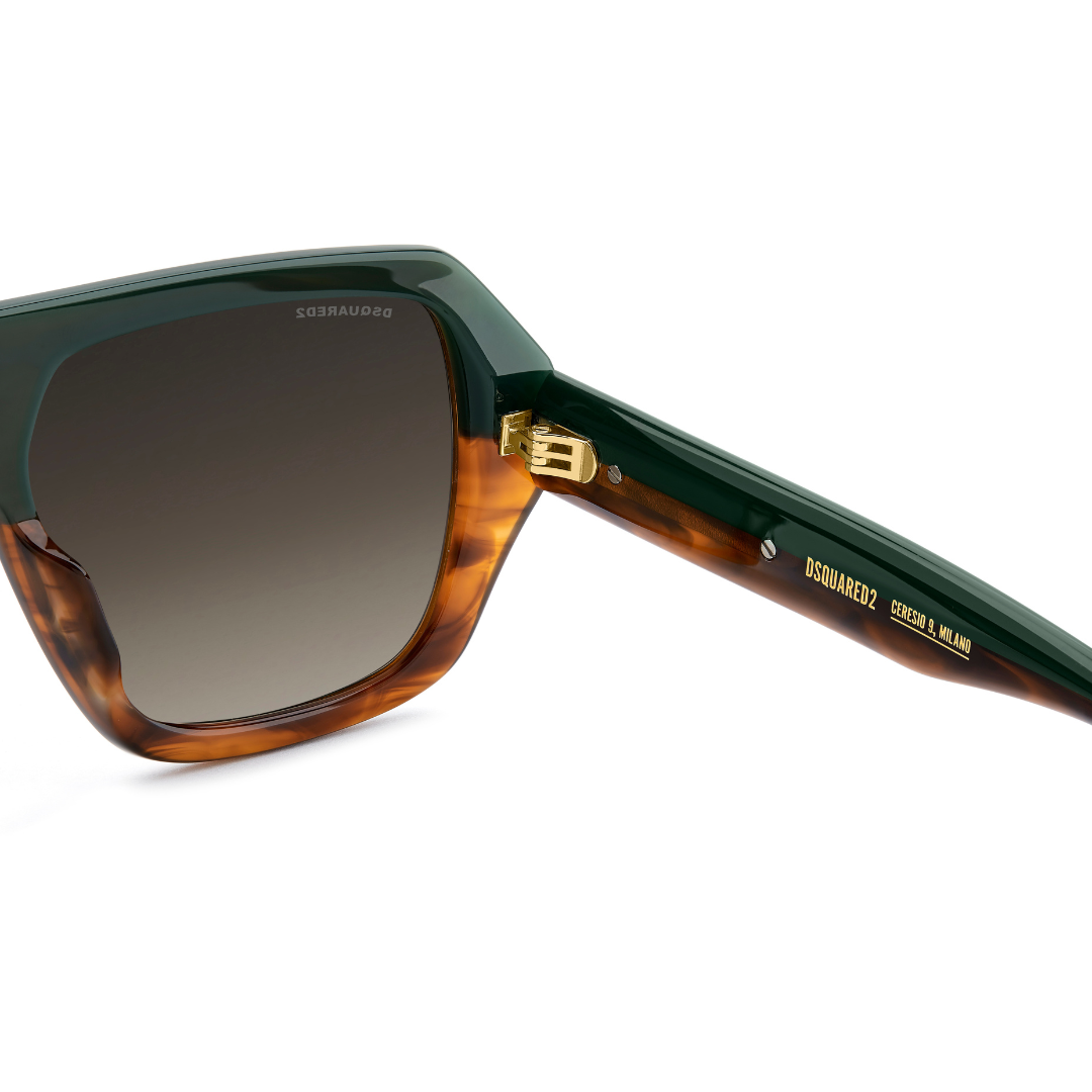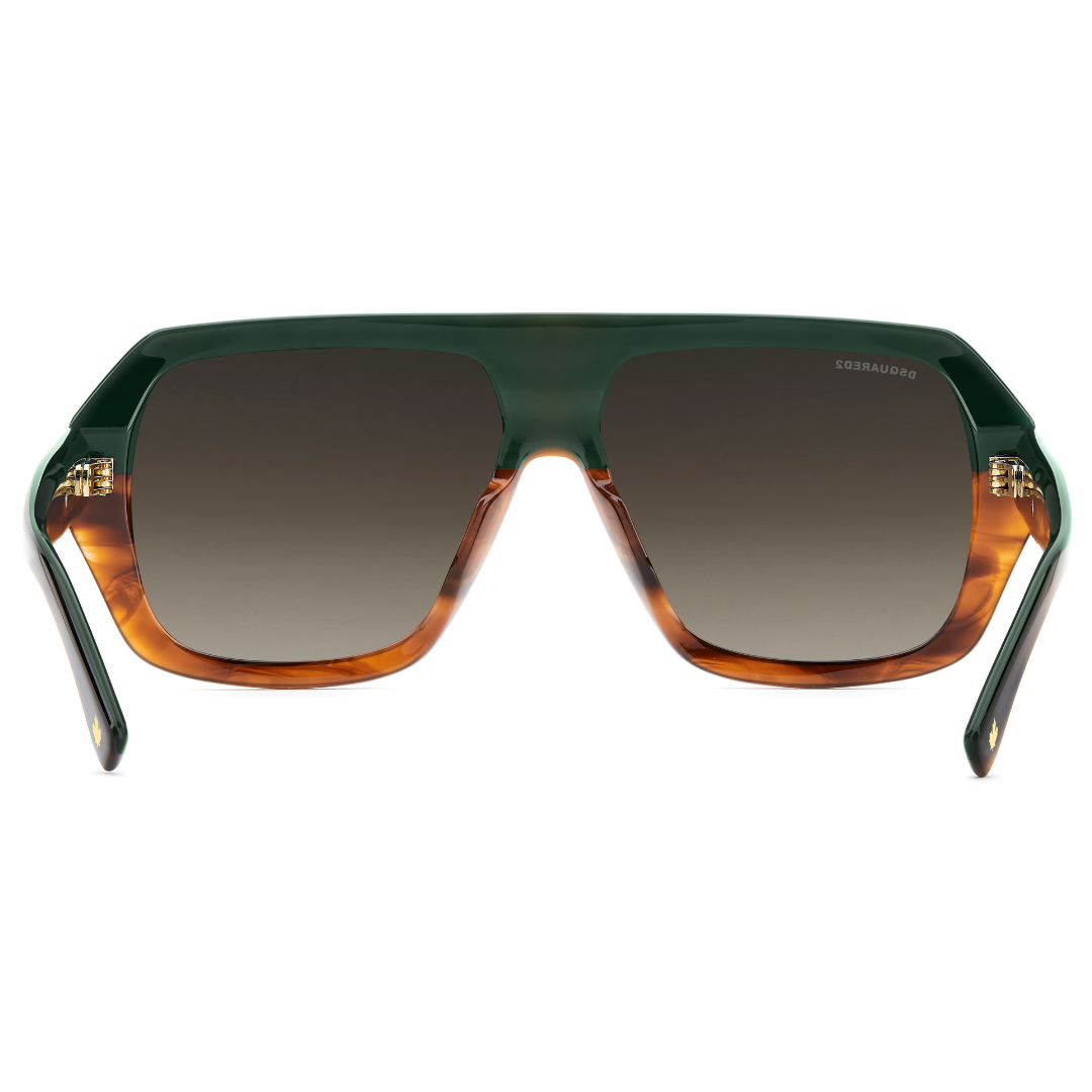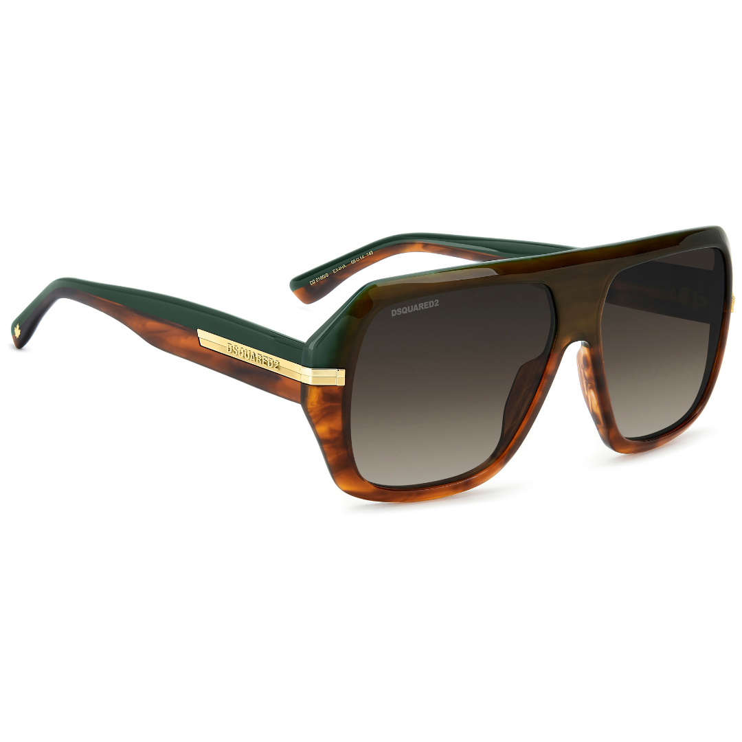 Estas gafas de sol de DSQUARED2 D2 0160/S EX4 en acetato se van a llevar todo el protagonismo. La montura grande biselada es resuelta, valiente y puede llevar lentes solares de corrección. Como toque de acabado, se proponen en acetato marrón havana degradado combinado con un verde en el interior. Los remaches icónicos se extienden hasta las varillas, convirtiéndose en un adorno con un acabado brillante/mate y sirviendo de base para el logotipo DSQUARED2 en relieve.