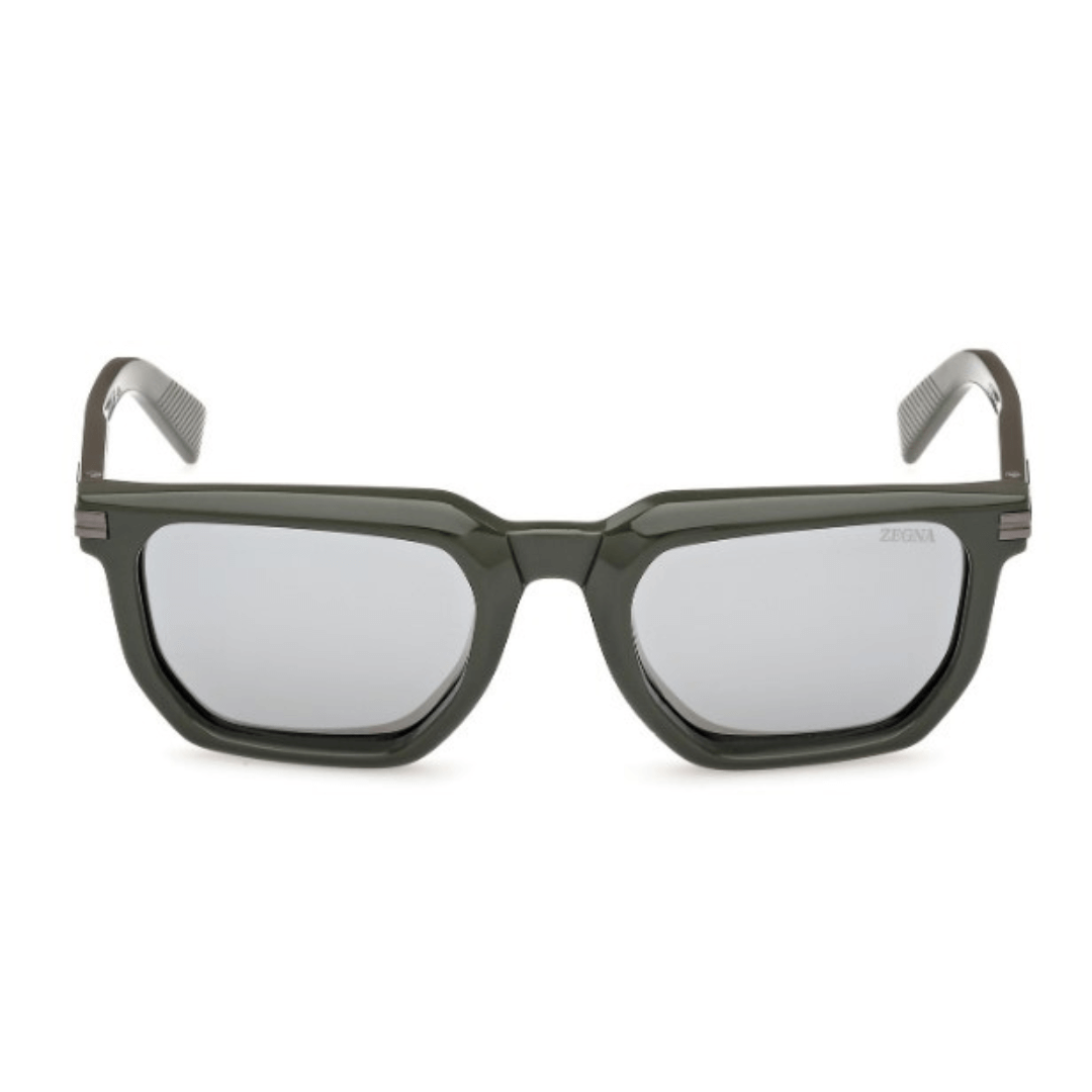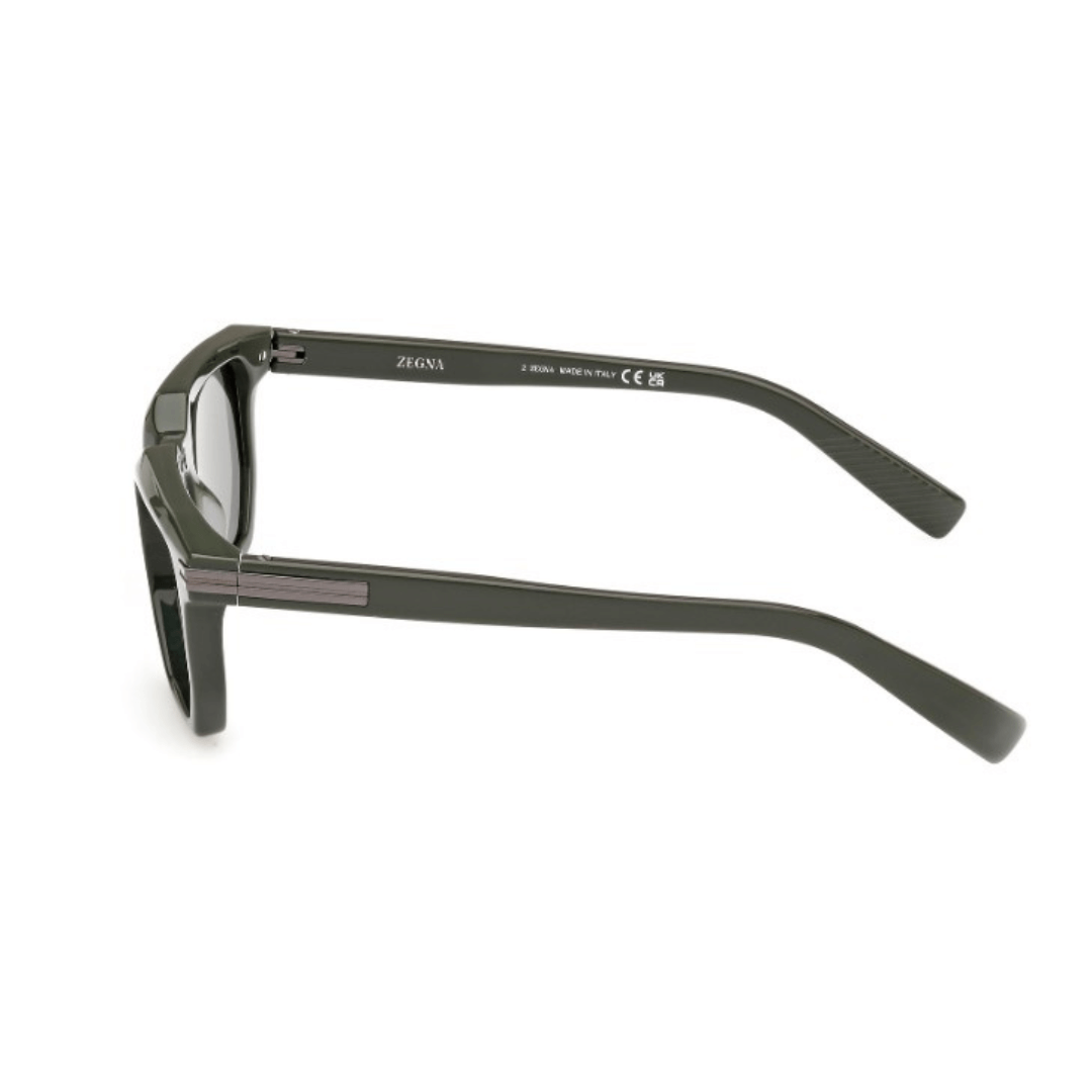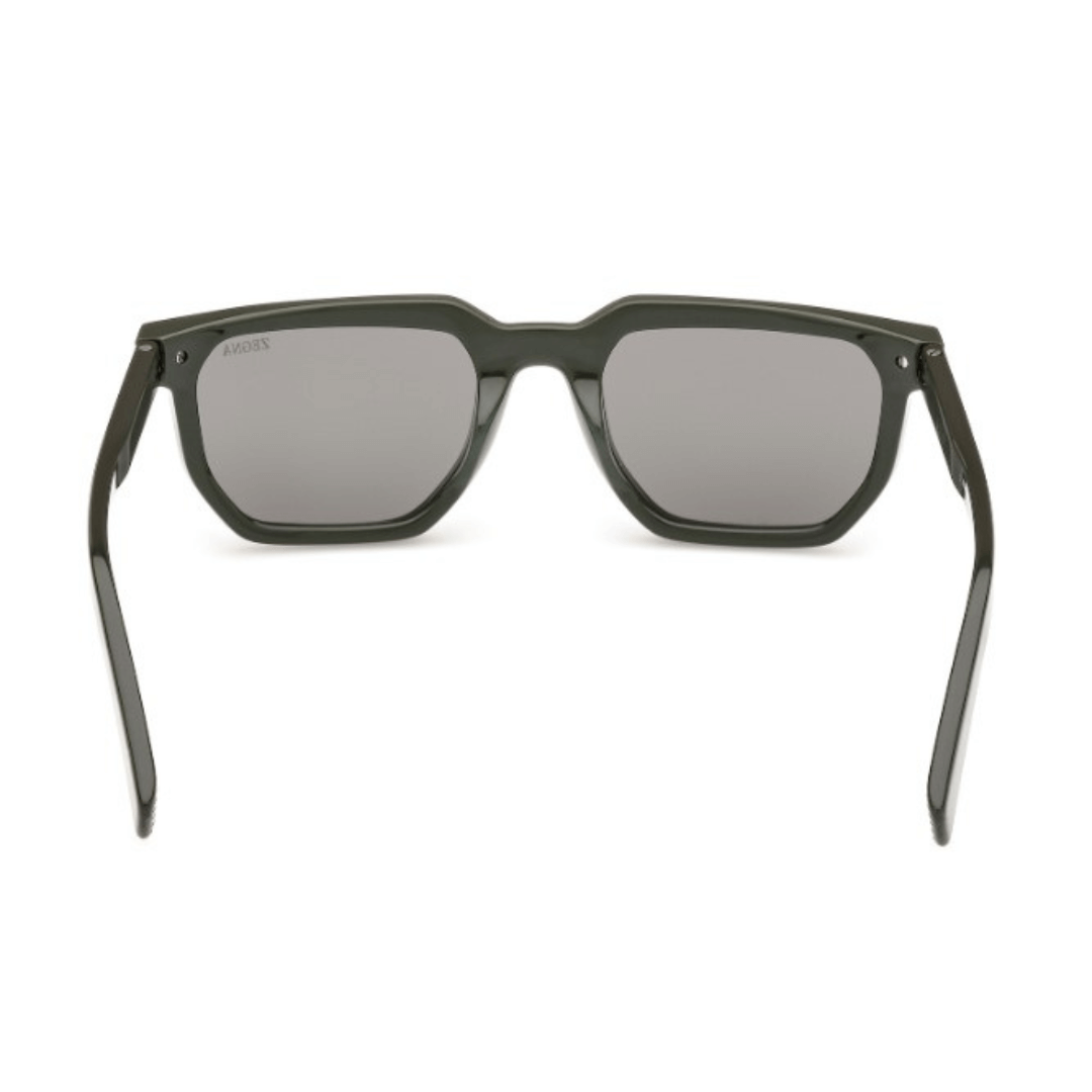 Gafas de sol Ermenegildo Zegna hechas en acetato de color verde, forma geométrica y lentes con índice de protección 3.