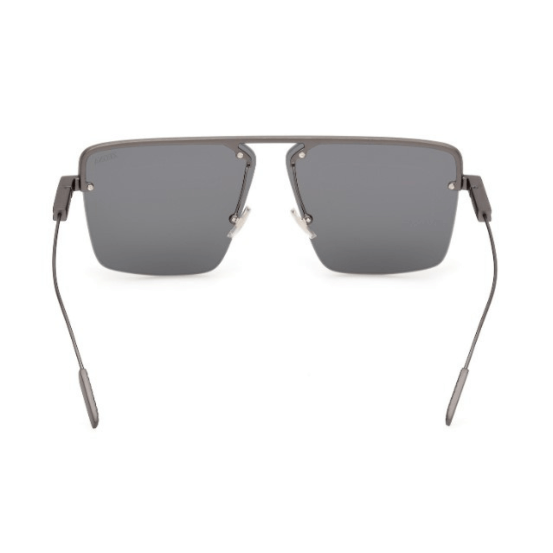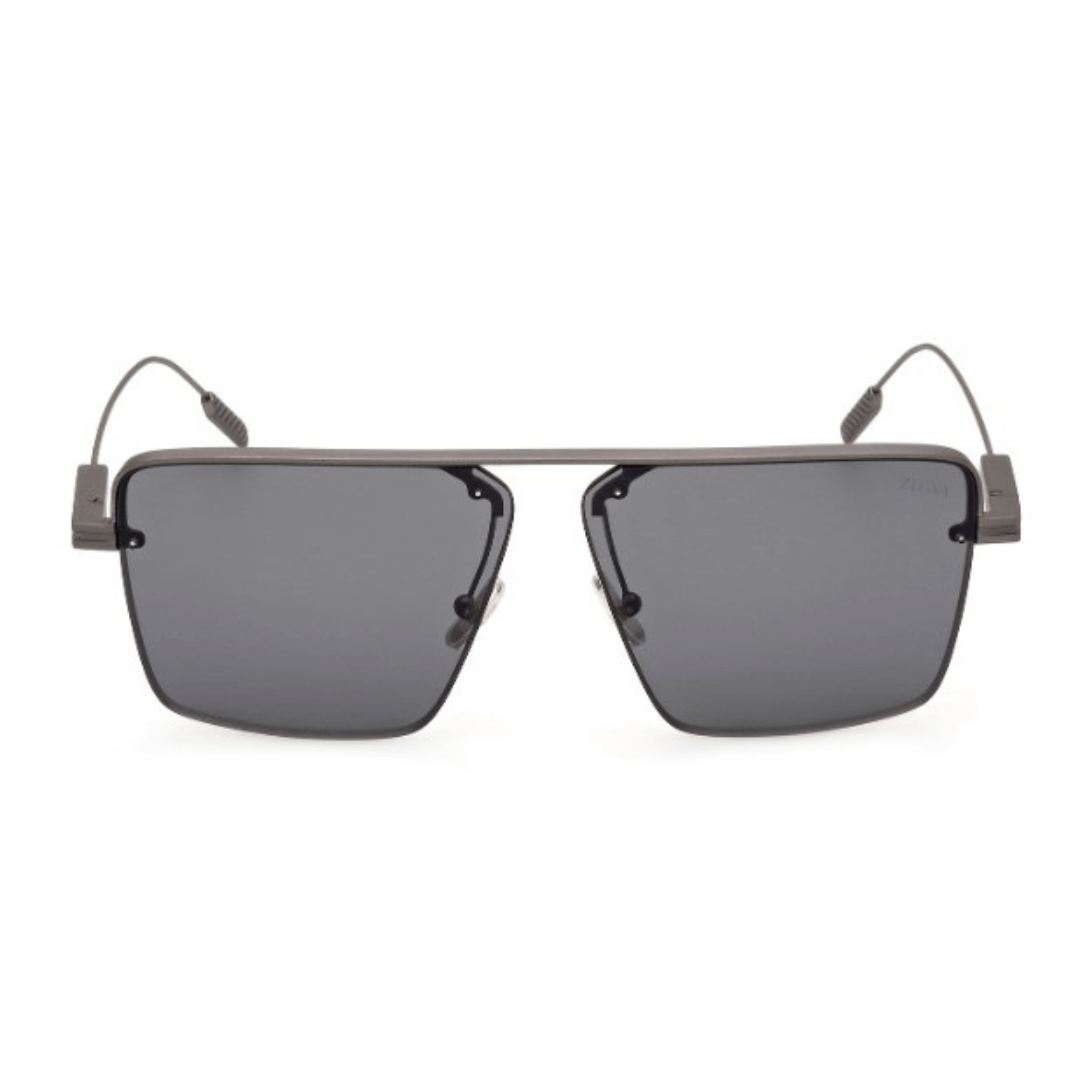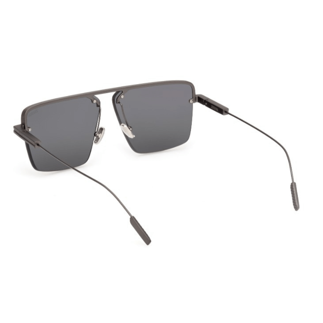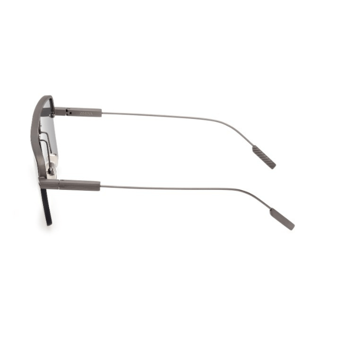 Gafas de sol Ermenegildo Zegna hechas en metal de color gris, forma cuadrada y lentes con índice de protección 3.