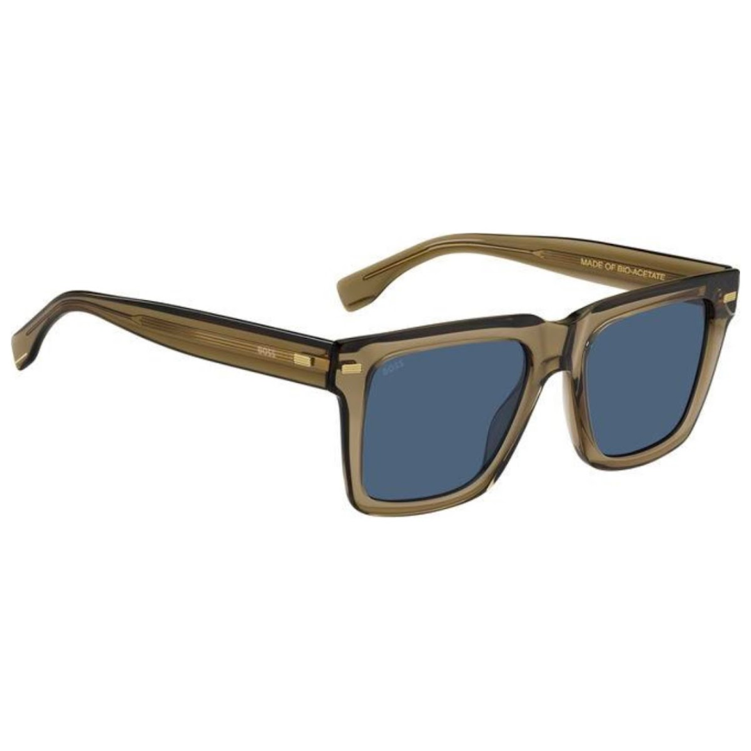 Gafas de sol de la marca BOSS hechas en acetato marrón, forma cuadrada y lentes con índice de protección 3.