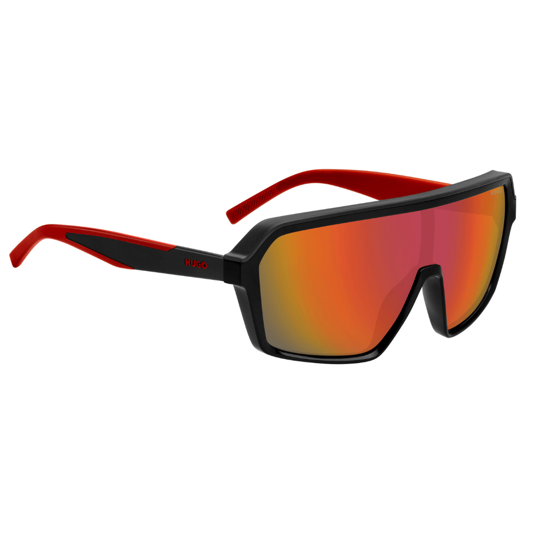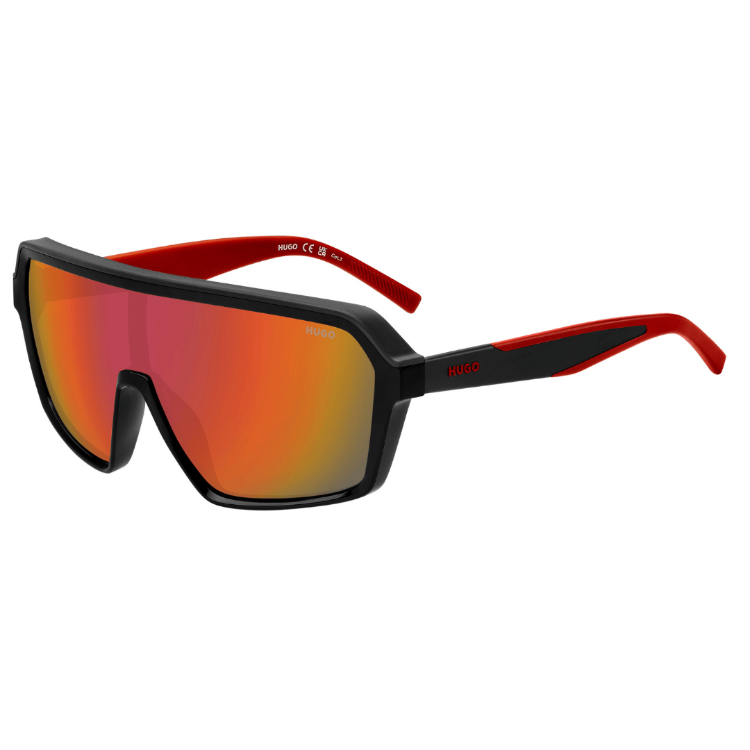 Las gafas de sol Hugo HG 1334/G/S 807 presentan un diseño de forma máscara (shield) con una estética claramente deportiva y moderna. Su montura en color negro ofrece un estilo limpio y versátil, mientras que la lente continua en tono gris oscuro aporta una cobertura amplia y uniforme, ideal para maximizar la protección frente a la luz solar intensa. Gracias a su diseño envolvente, el modelo se ajusta con comodidad y estabilidad, perfecto tanto para el uso diario como para actividades activas. La combinación de su silueta futurista con el acabado sobrio en negro convierte a este modelo en una opción elegante y funcional para quienes buscan un look actual con carácter.