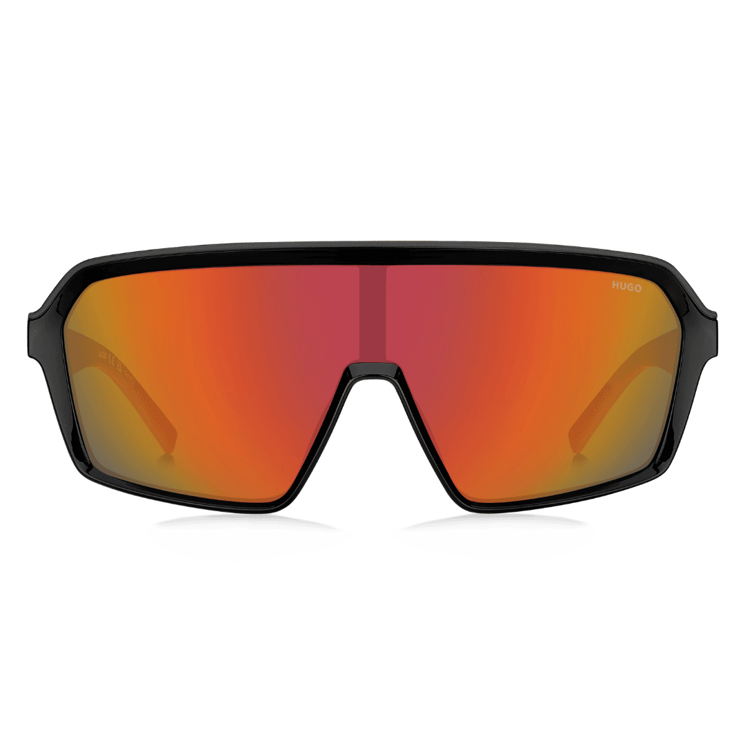 Gafas de sol Hugo HG 1334/G/S 807 en negro con forma máscara y lente continua gris, estilo moderno y envolvente.