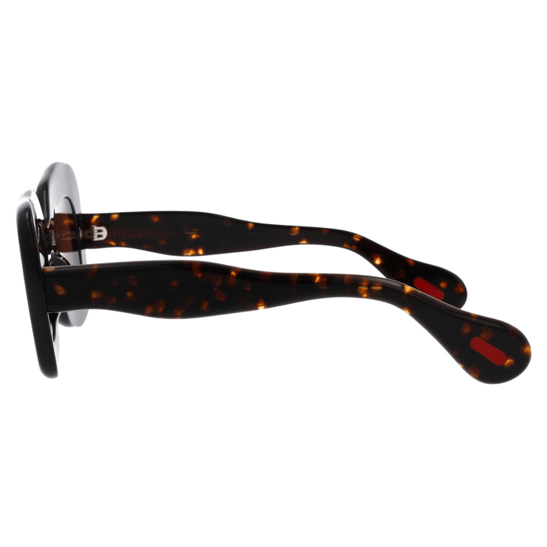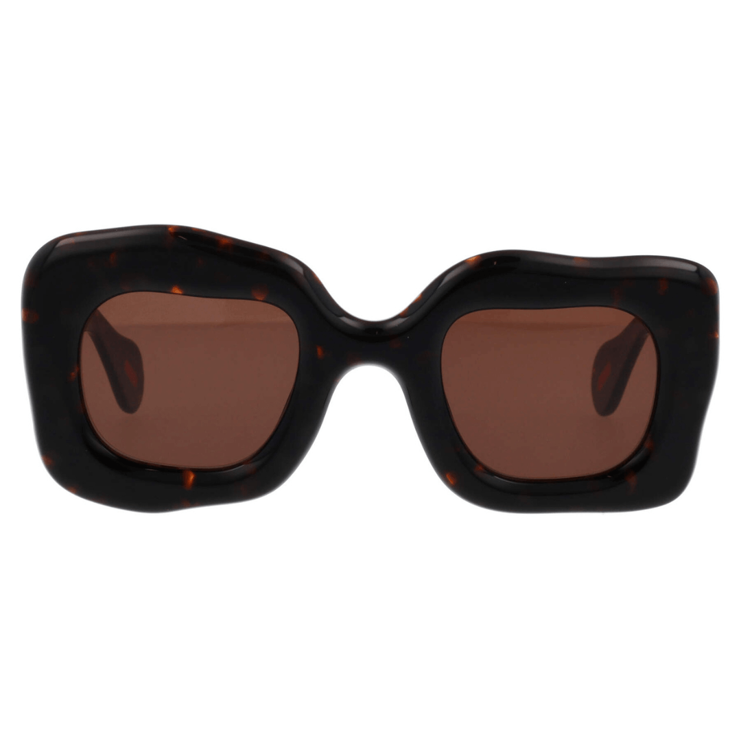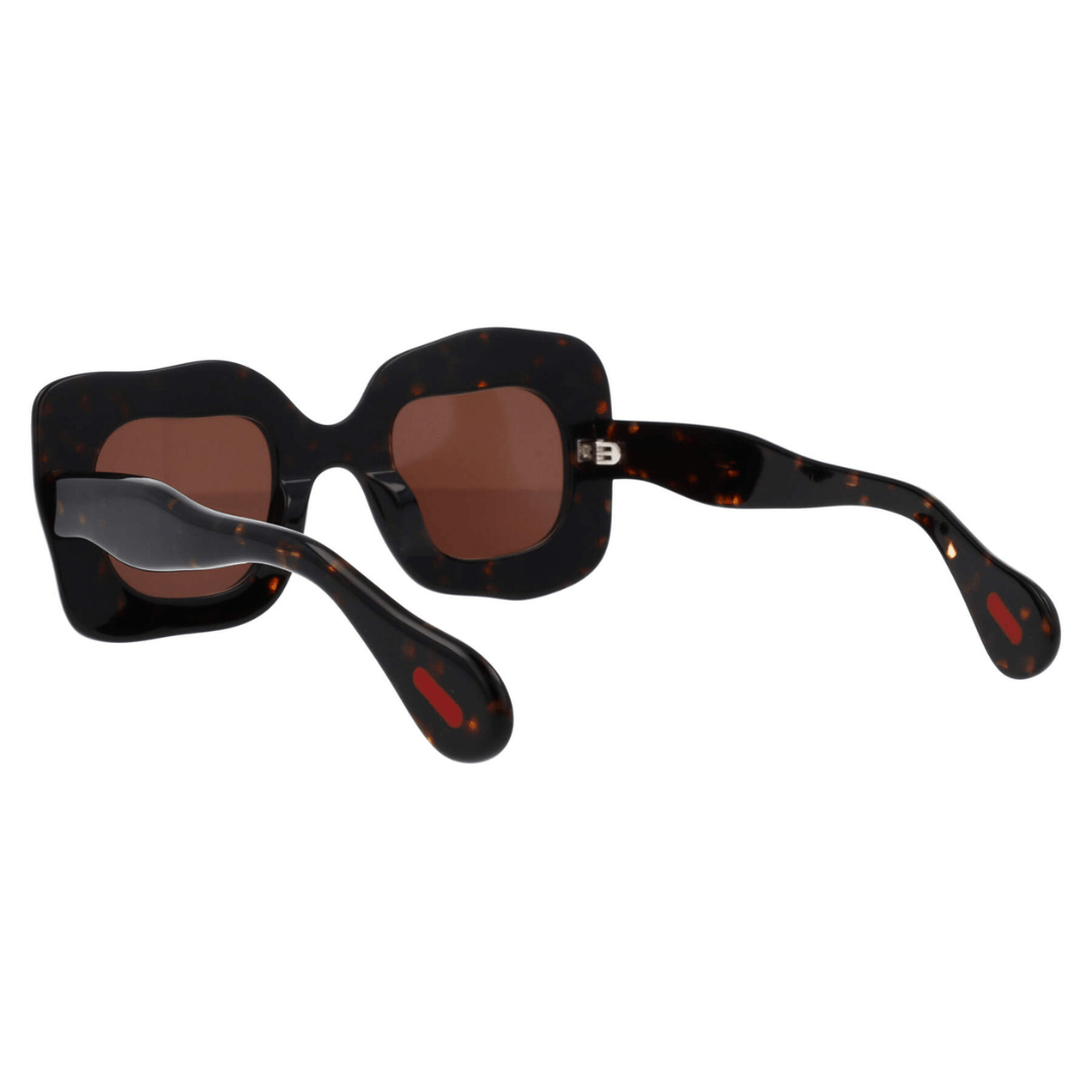 Gafas de sol Kartell hechas en acetato transparente de color marrón estilo carey, forma cuadrada y lentes con índice de protección 3.