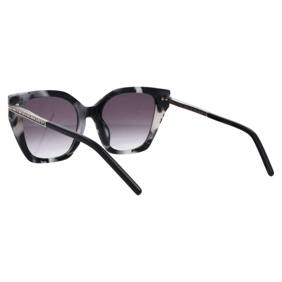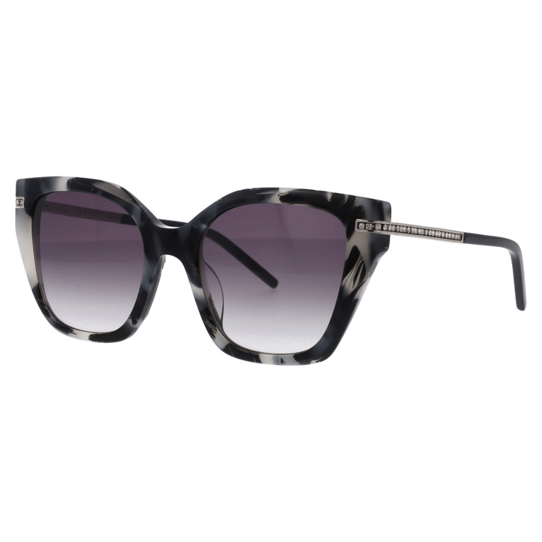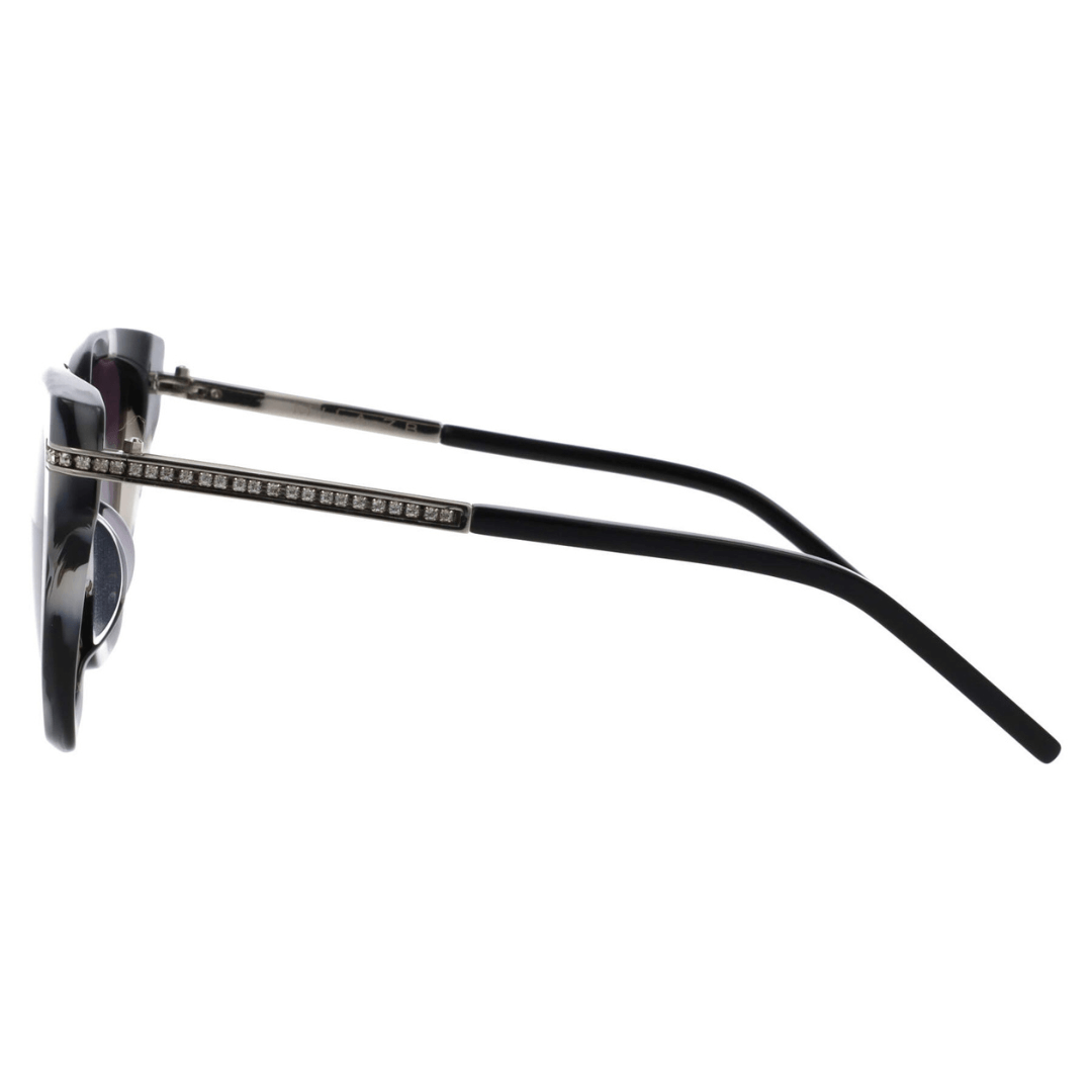 Gafas de sol Mila ZB hechas en acetato gris, lentes con índice de protección 3 y linea de Strass en talones del frontal de la gafa.