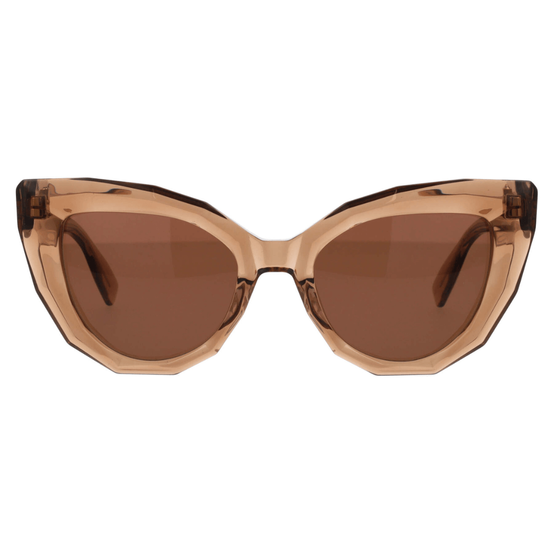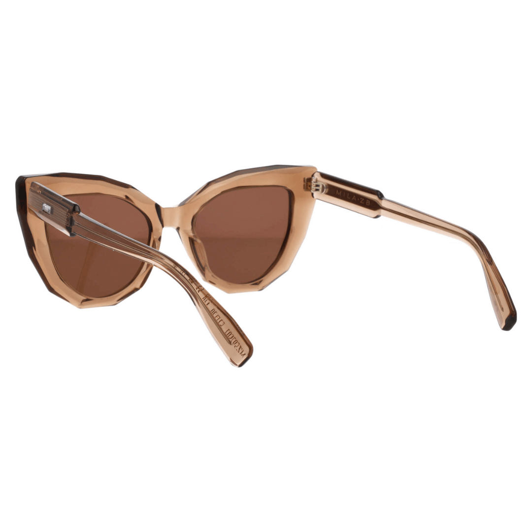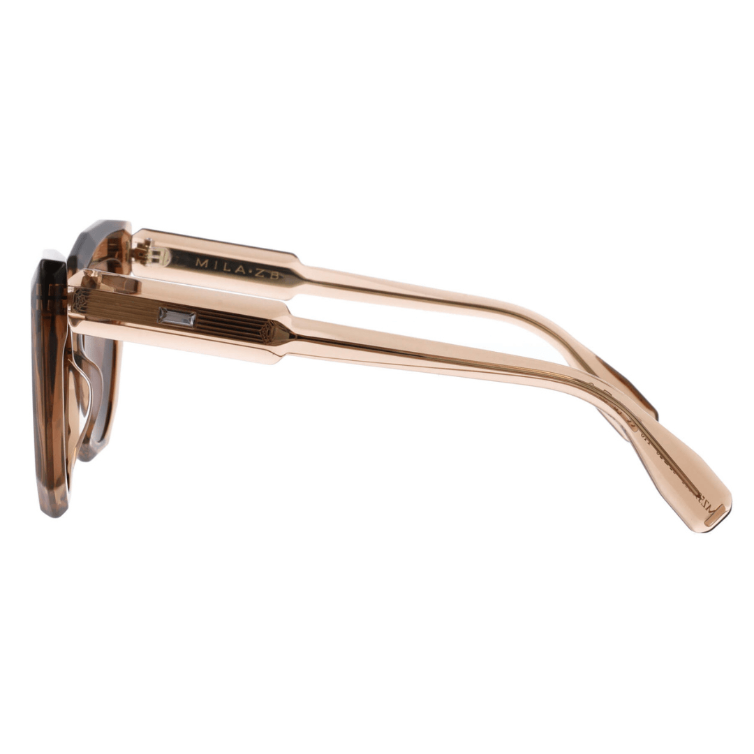 Gafas de sol Mila ZB en acetato transparente de color marrón, lentes con índice de protección 3 y un detalle de Strass en varillas.