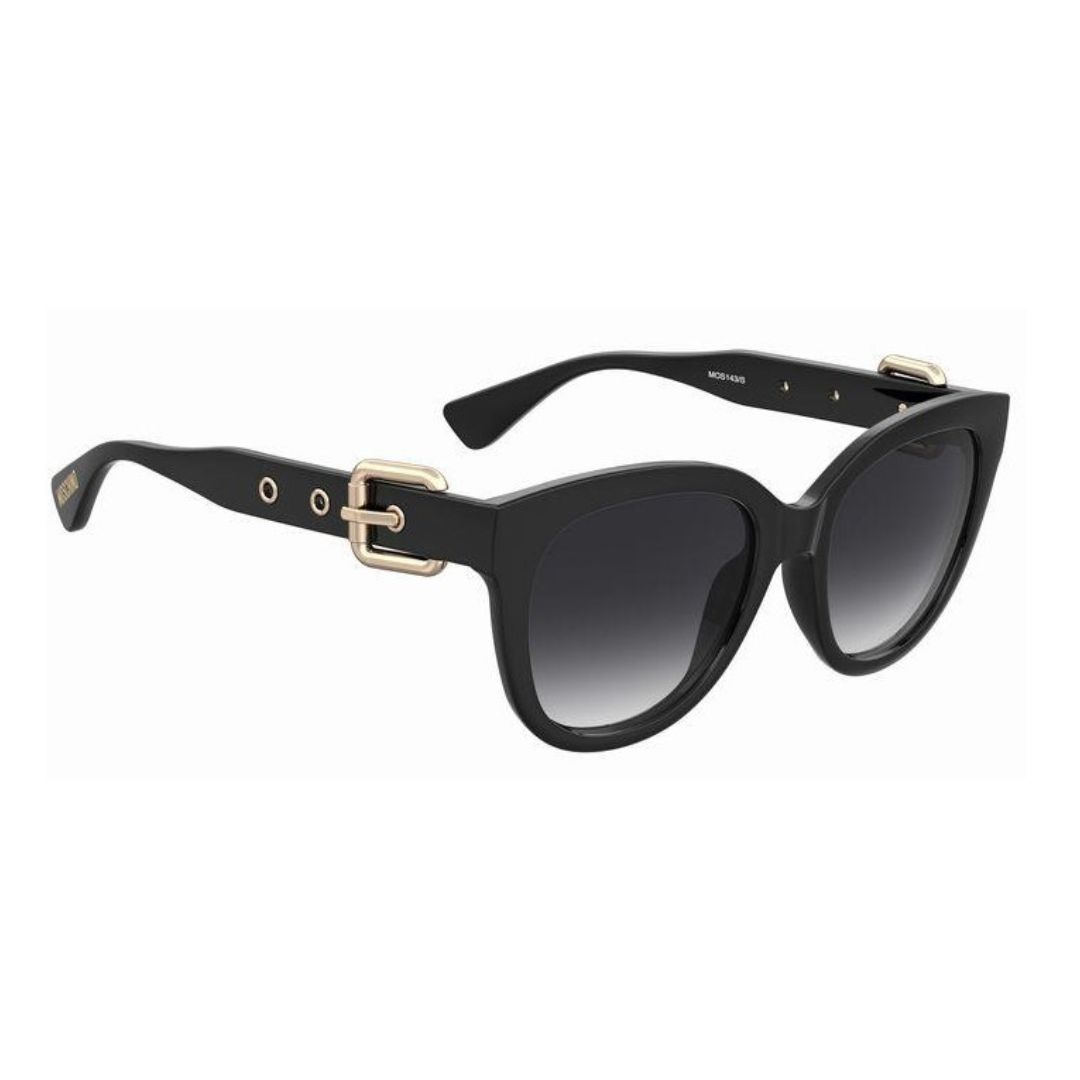 Gafas de sol de Moschino, con hebilla de cinturón como detalle en la patilla, color negro y lentes con índice de protección 3.
