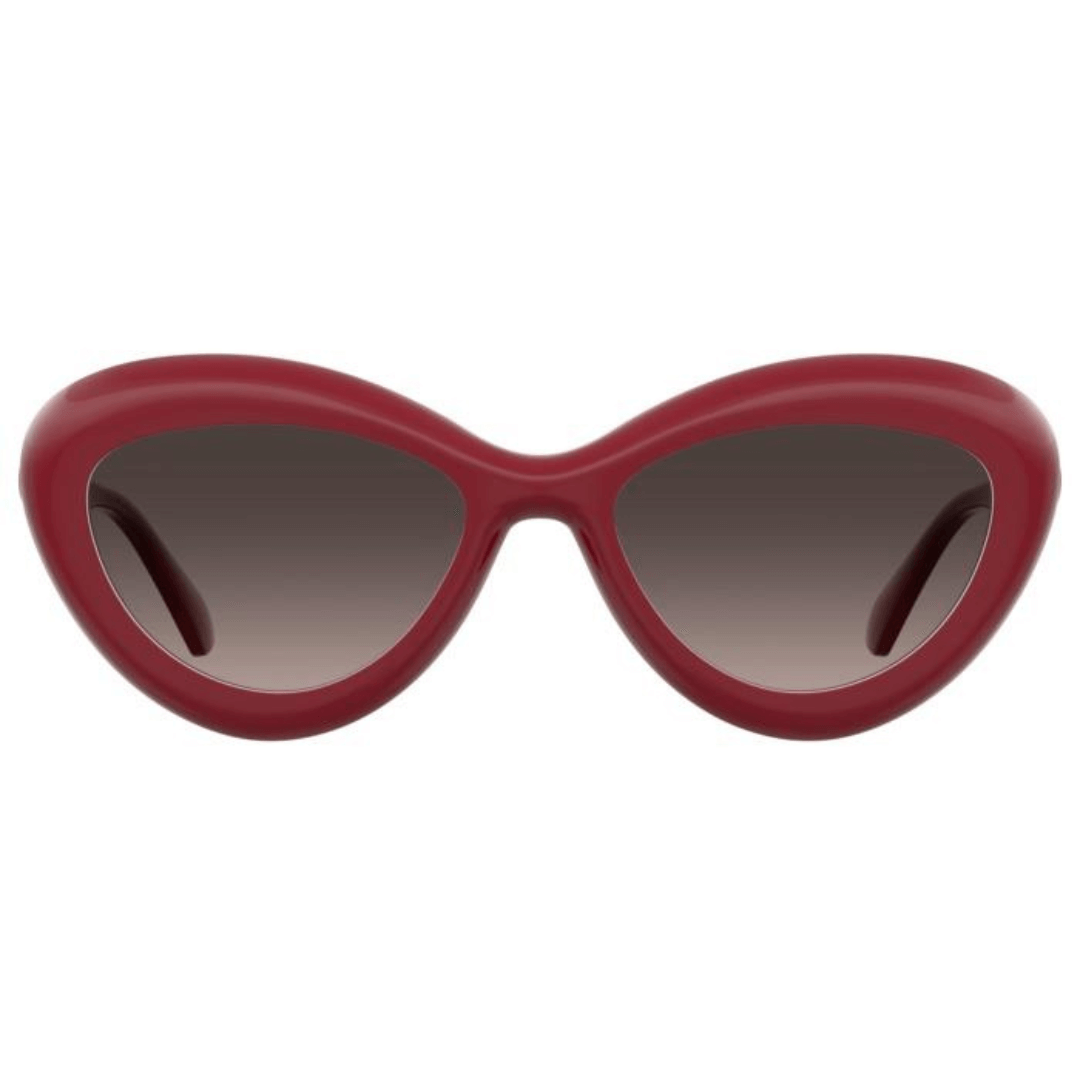 Gafas de sol femeninas en acetato rojo y con forma cat-eye. Lentes degradadas color marrón sombreado.