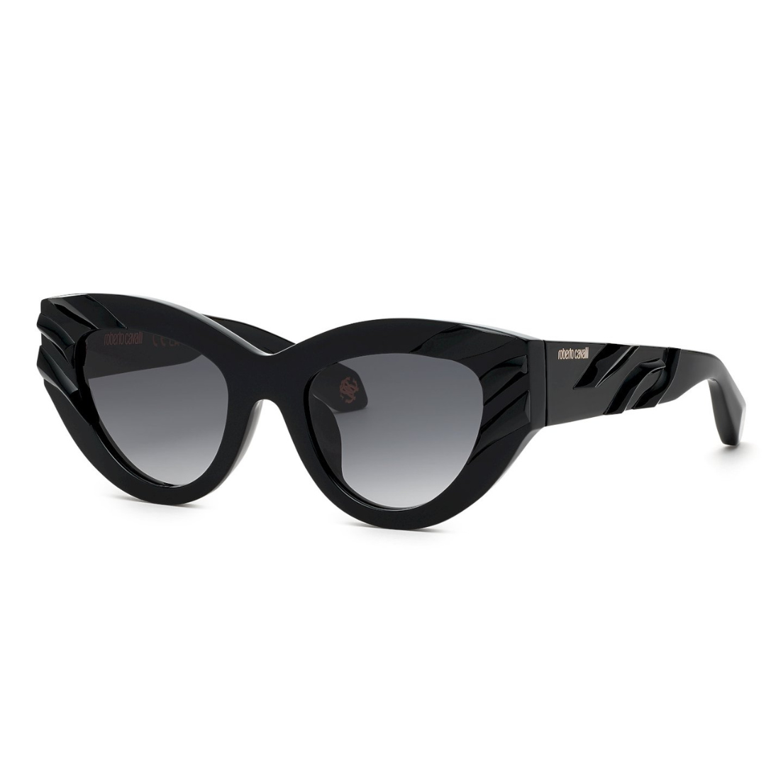 Gafas de sol Roberto Cavalli en acetato negro, forma de cat-eye y lentes con índice de protección 3.