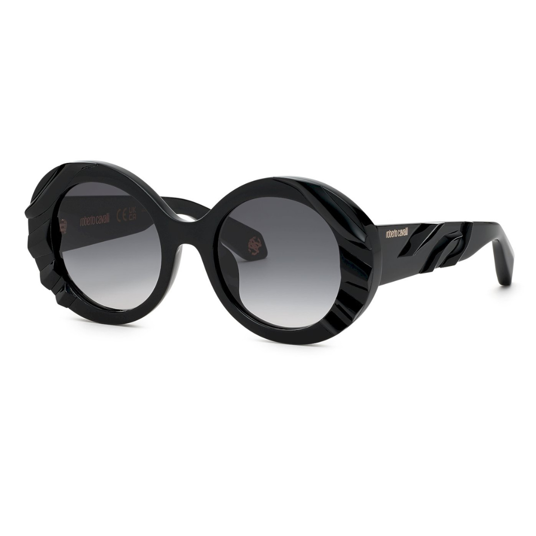 Gafas de sol Roberto Cavalli en acetato negro, forma redonda y lentes con índice de protección 3.