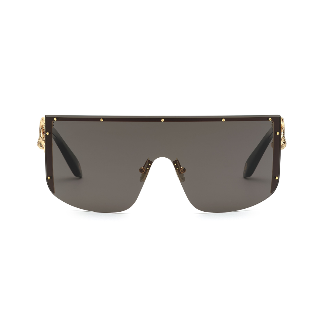 Gafas de sol Roberto Cavalli hechas en metal de color oro, forma de pantalla y lentes con índice de protección 3.