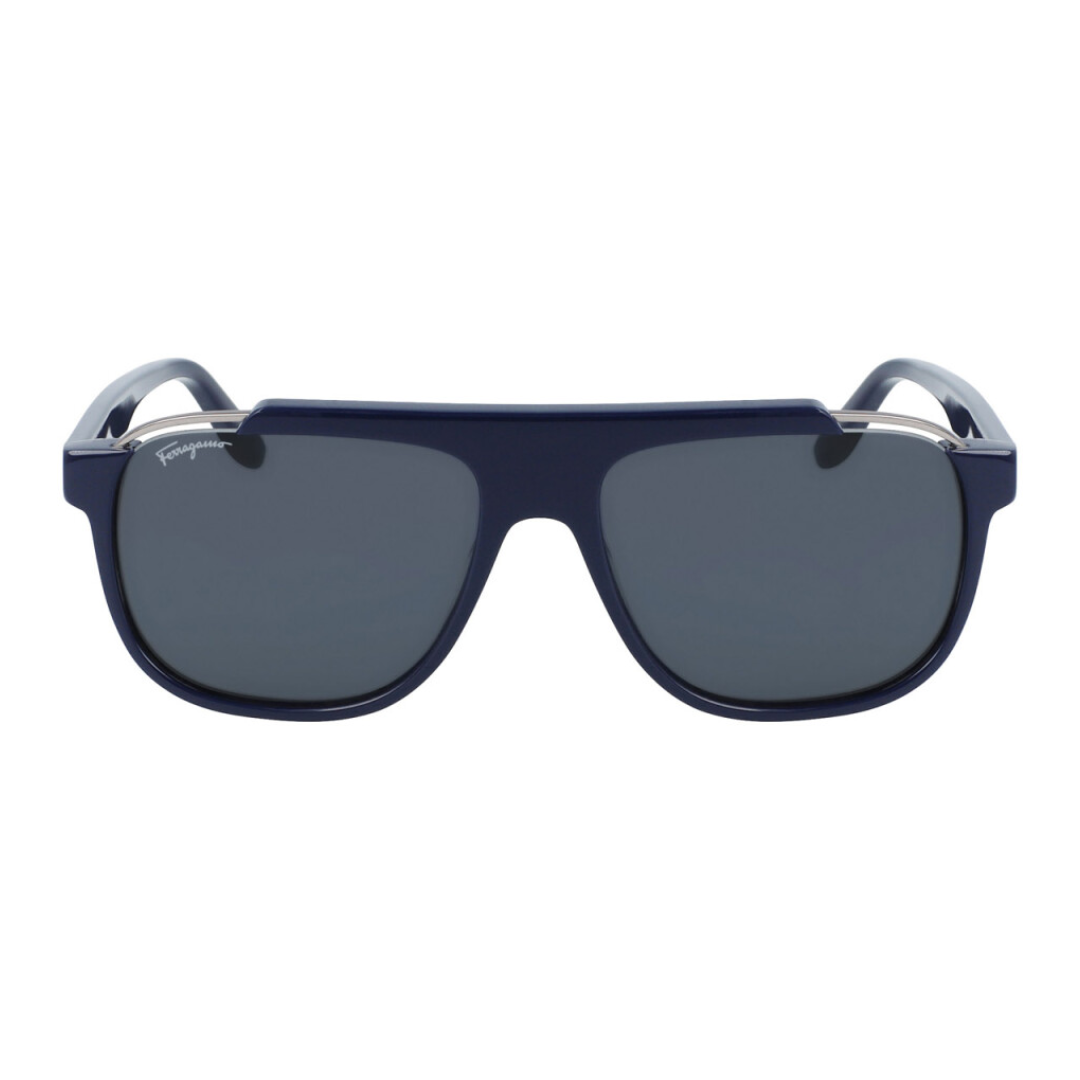 Gafas de sol Salvatore Ferragamo en acetato azul, forma cuadrada y lentes con índice de protección 3.