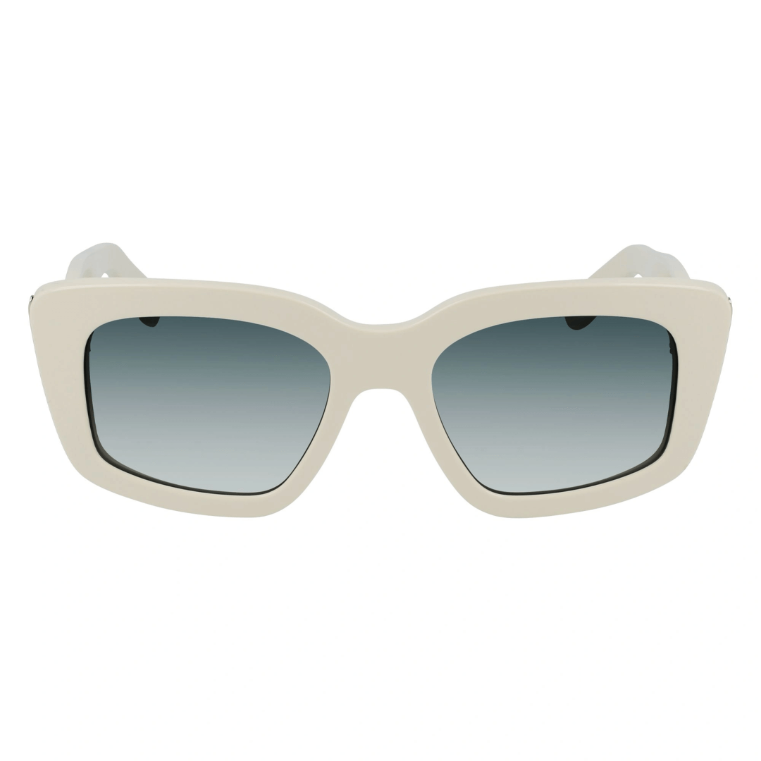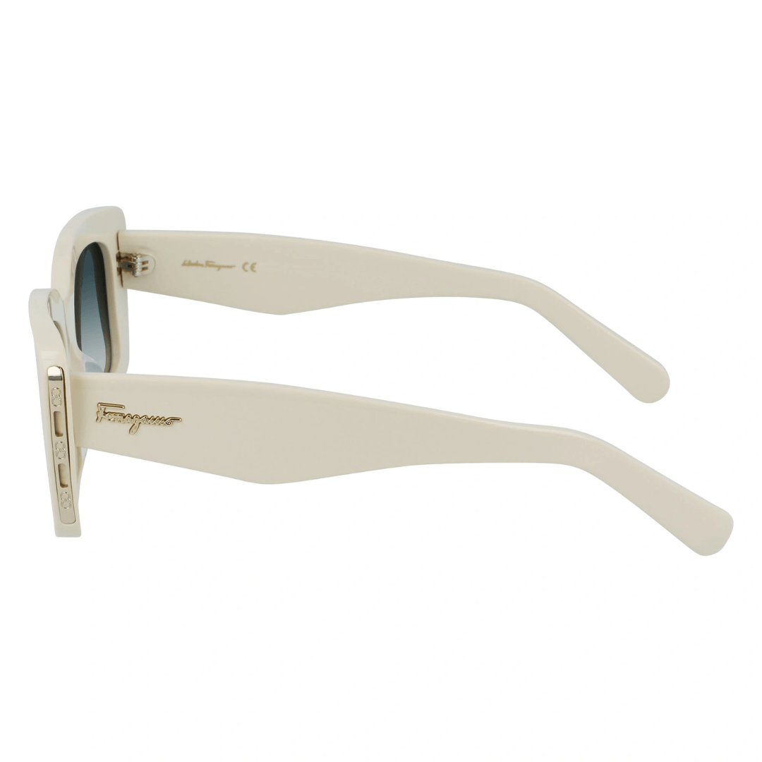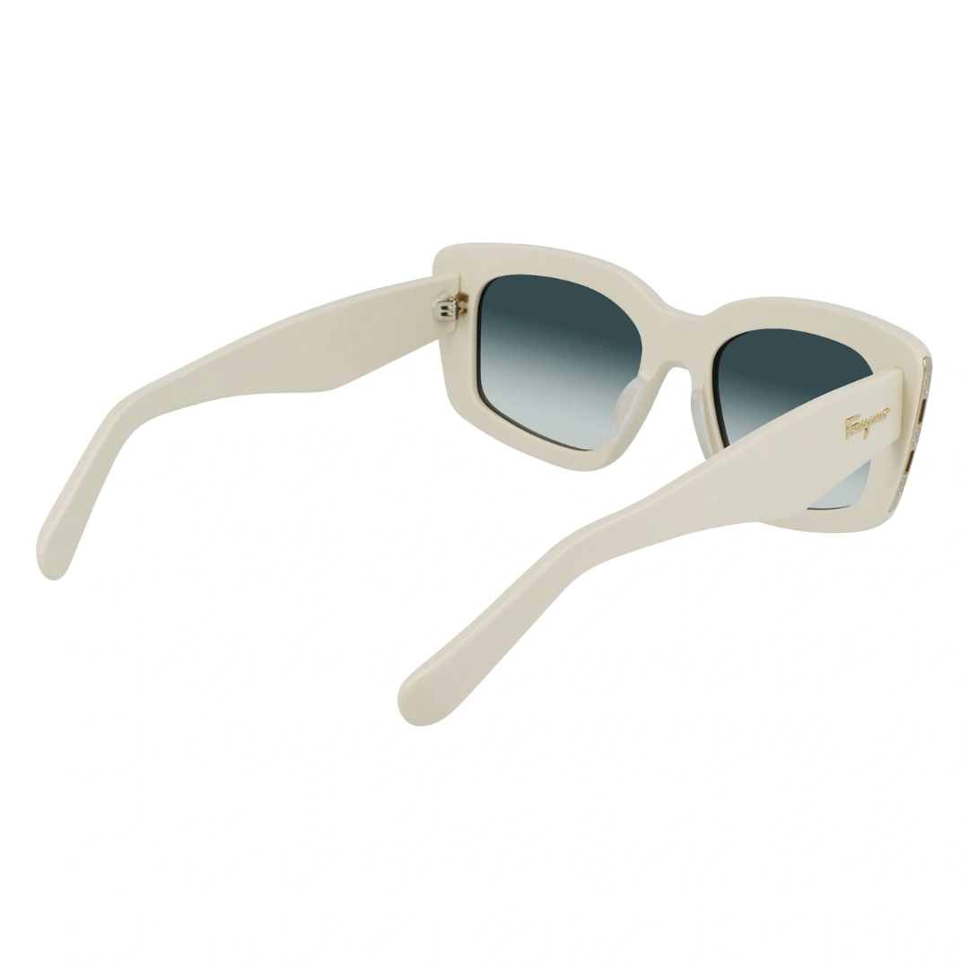 Gafas de sol Salvatore Ferragamo hechas en acetato de color blanco, forma rectangular y lentes con índice de protección 2.