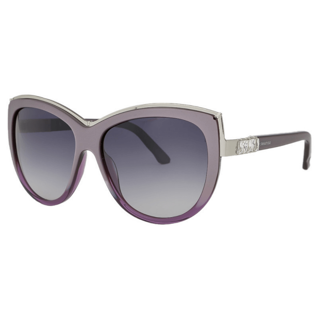 Gafas de sol en acetato con forma cat-eye en color violeta, con cristales Swarovski brillantes en las varillas.