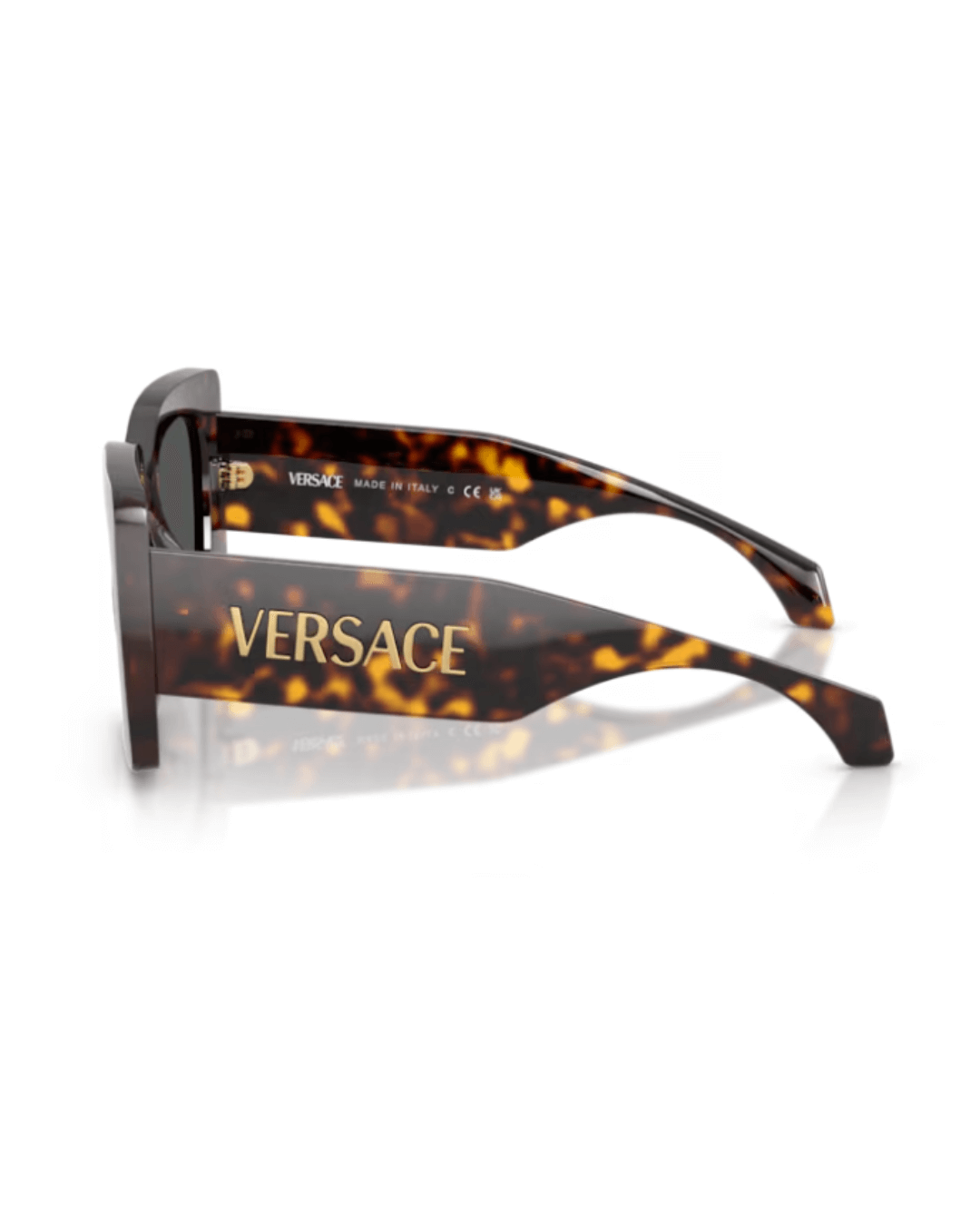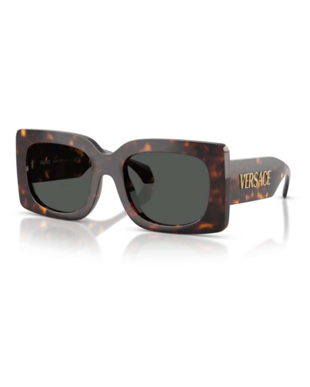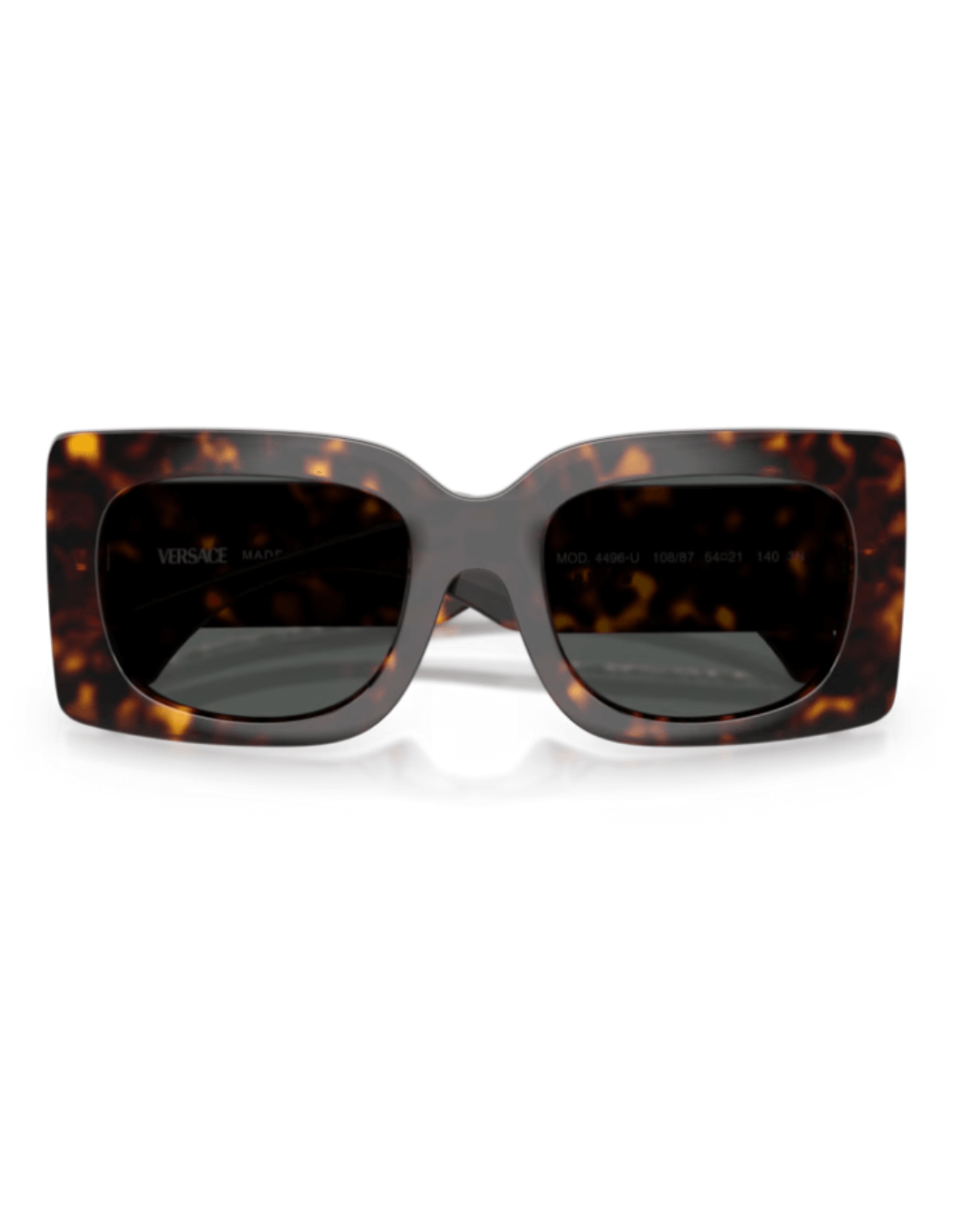 Las gafas Versace VE4496U 108/87 presentan un diseño de montura inyectada en tono habana (marrón transparente) con forma cuadrada de gran formato, combinando elegancia y presencia. Las lentes son de color gris oscuro y ofrecen protección total frente a los rayos UV. Las medidas aproximadas son 54 mm de ancho de lente, 21 mm de puente y 140 mm de varilla. Fabricadas en Italia bajo la firma de la casa italiana Versace, estas gafas son ideales para quienes buscan un accesorio de lujo con carácter, estilo refinado y gran adaptabilidad a rostros ovalados o en forma de corazón.