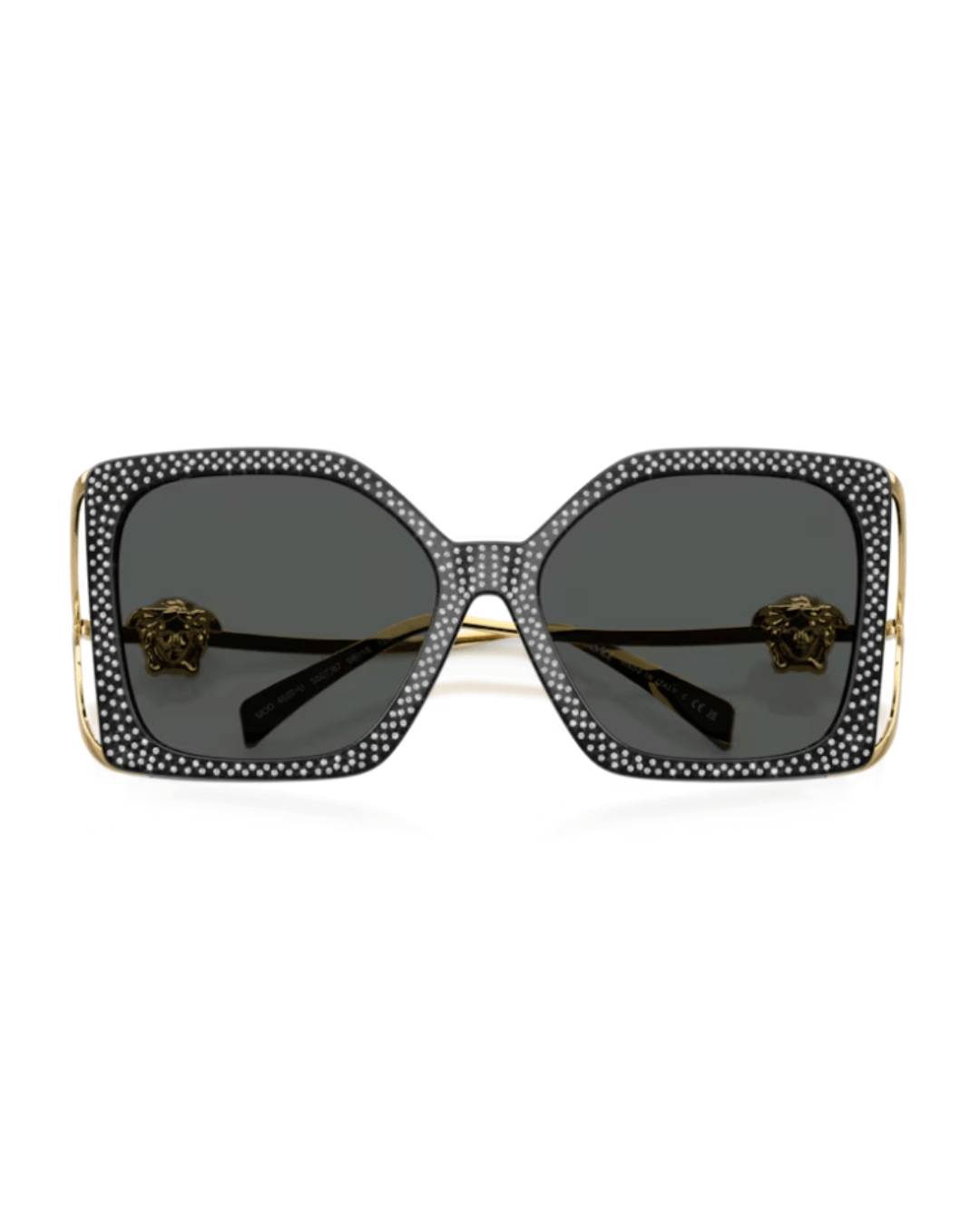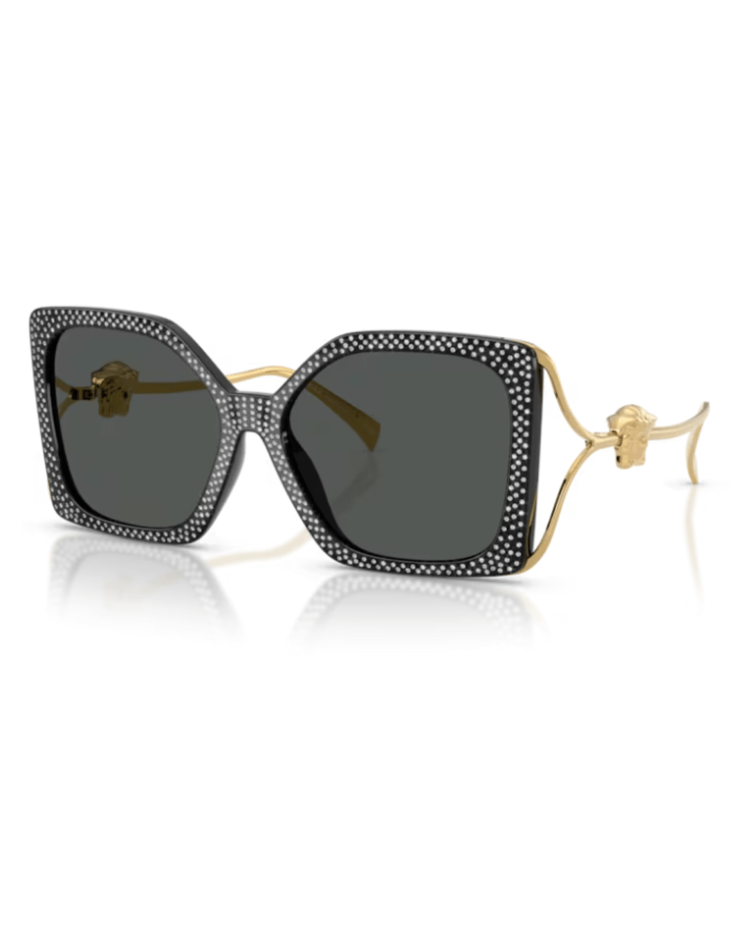 Las gafas de sol Versace VE4502U 550787 son una pieza llamativa y elegante que combina lujo y diseño sofisticado. Presentan una montura de acetato inyectado en color negro con incrustaciones de cristal tipo “strass” que aportan un toque brillante y distintivo. Las lentes son de tono gris oscuro, ofreciendo una estética sobria y versátil. Con unas medidas de 58 mm de lente, 16 mm de puente y 130 mm de varilla, están diseñadas en un tamaño grande (“XXL”), ideales para rostros amplios o para quienes buscan unas gafas de presencia marcada. Su forma cuadrada realza las facciones con líneas estructuradas, mientras que detalles metálicos, como la cabeza de Medusa característica de Versace, aportan un aire de opulencia. Este modelo es perfecto para quienes desean un accesorio de lujo con un carácter glamuroso y sofisticado, que destaque sin renunciar a la elegancia.